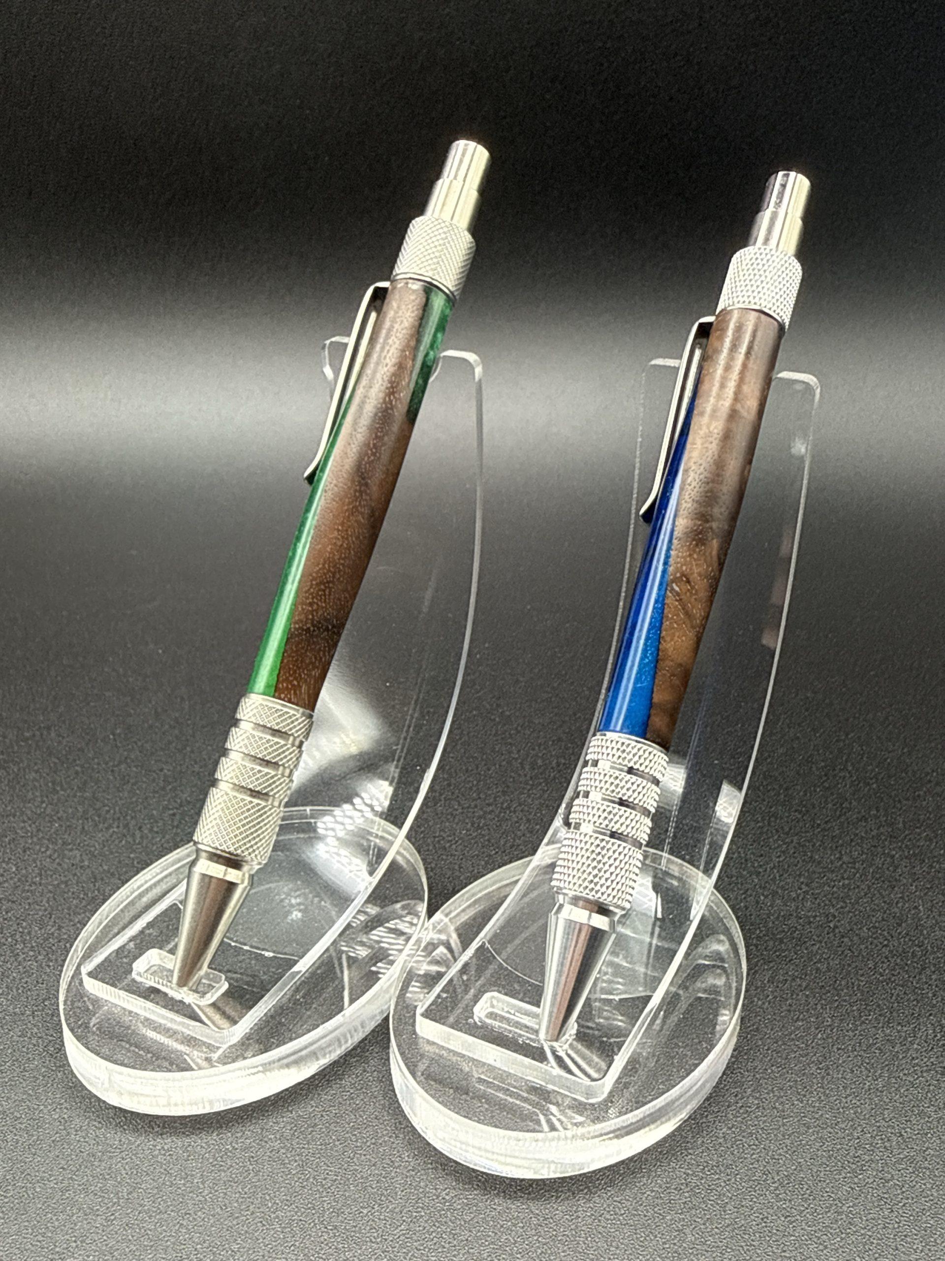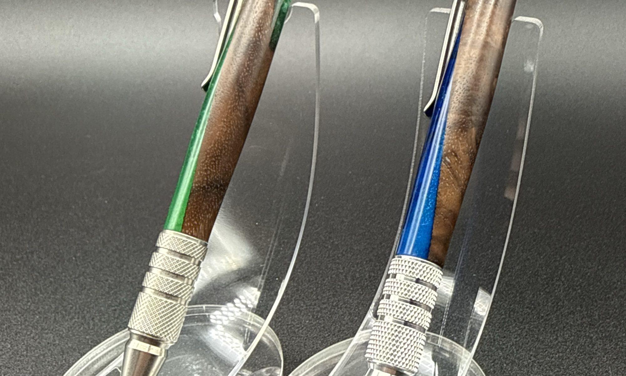 Robust and sturdy EDC click pens use a Schmidt mechanism for years of long lasting use. The pen uses either a Parker style or Rollerball style ink cartridge to allow the user to customize the ink.